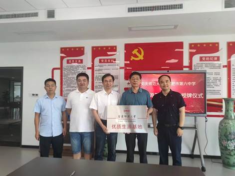 合肥六中、合肥168陶冲湖中学相关负责人出席了活动。双方就“优质生源基地”共建事宜达成共识,并签署了合作协议,举行了授牌仪式。公司党委书记夏宏宇介绍了公司的办学定位、招生计划、历年招生情况等,对两所中学近年来为公司输送优秀员工表示感谢,并针对推进基地建设相关事宜展开了深入交流。