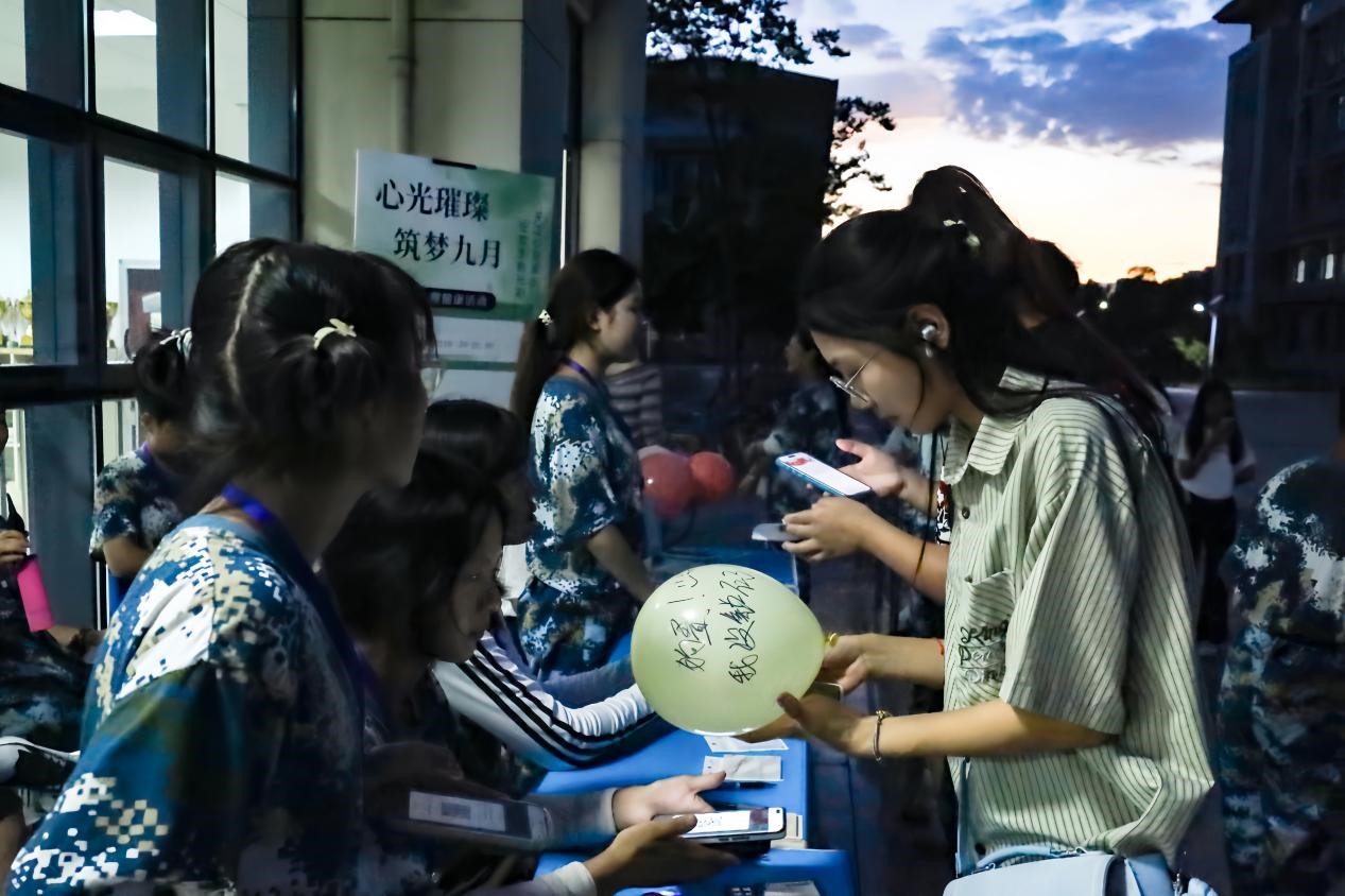 “先用打气筒将气球充满气,再把烦恼和焦虑写在气球的球面上,最后将气球踩爆。”活动的工作人员向围观的员工们介绍规则。在了解相关规则后,数名员工操起打气筒,将学业压力过大、人际交往的不顺、生活方面的不适应等烦恼与焦虑“注入”气球之中,而后用力踩爆。“太过瘾了!感觉像是把烦恼随着气球一起踩爆一般。”环境科学与工程类专业2024(2)班的程佳欣开心地说。她表示,这一踩,把入学以来人际关系的焦虑和对新生活的彷徨通通“踩爆”了。