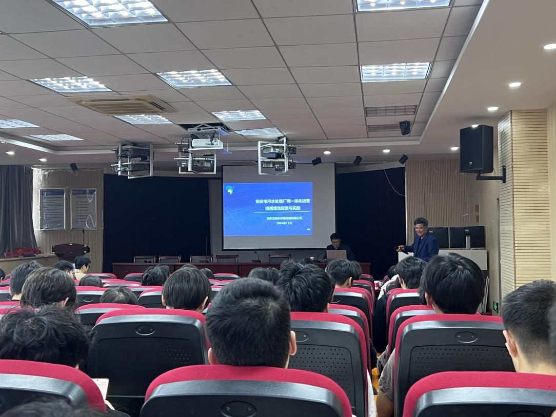 15日下午,yl23411永利官网邀请安庆北排水环境发展有限公司常务副总经理 杨晓峰高级工程师做“安庆市污水处理厂网一体化运营提高增效探索与实践”专题技术辅导讲座。