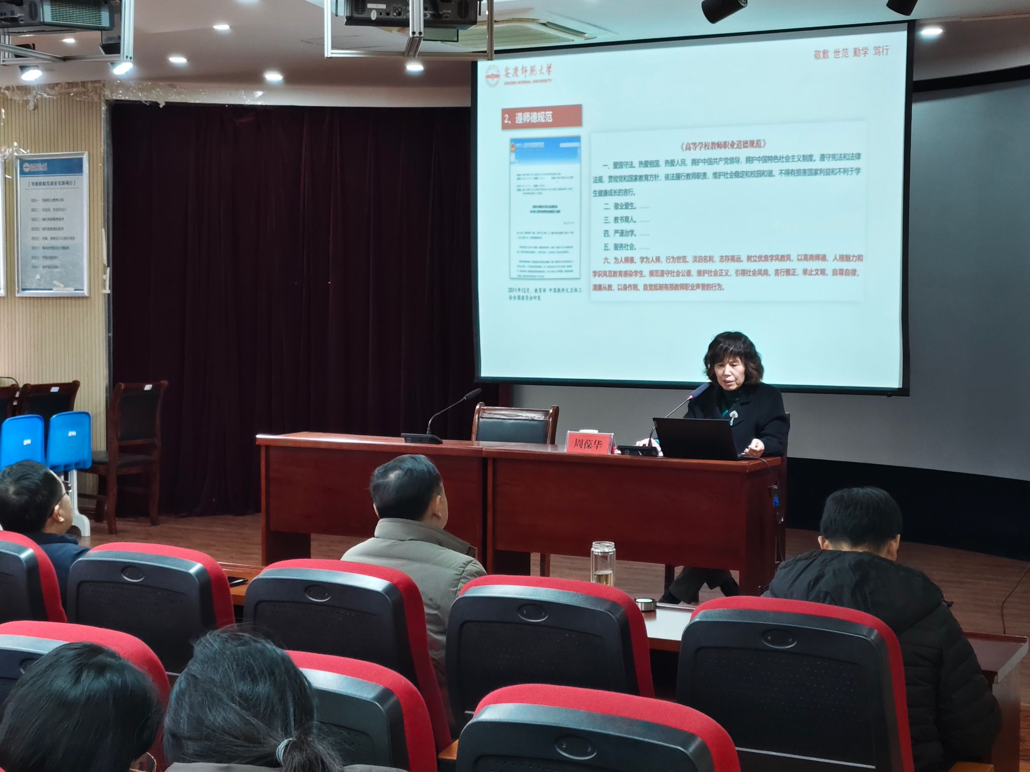 12月11日,yl23411永利官网在F411报告厅举办师德师风专题报告会, 2022年公司“三全育人”最美老师之“教书育人”最美老师、校关工委秘书长周葆华教授以“浅谈新时代高校师德师风建设”为主题作报告,公司全体教职员工参加报告会。