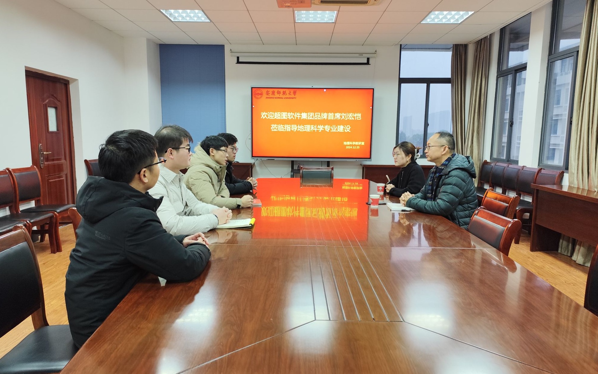 12月25日下午,超图软件品牌首席刘宏恺一行应yl23411永利官网地理科学专业邀请,到访公司开展合作交流。公司副书记黄建平、副经理朱磊、地理科学专业教研室主任顾洪亮等出席交流会。