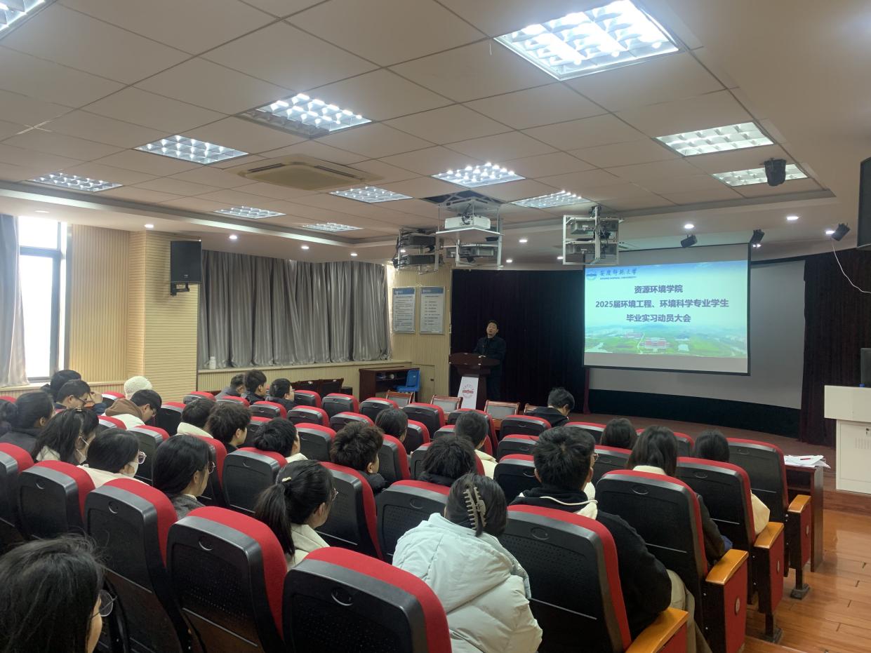 2月26日上午,yl23411永利官网在F411报告厅召开2025届环境工程、环境科学专业毕业实习动员大会。公司党委副书记黄建平、实习指导教师、毕业班辅导员及2025届环境类专业员工参加会议,会议由环境工程教研室教师黄小丁主持。