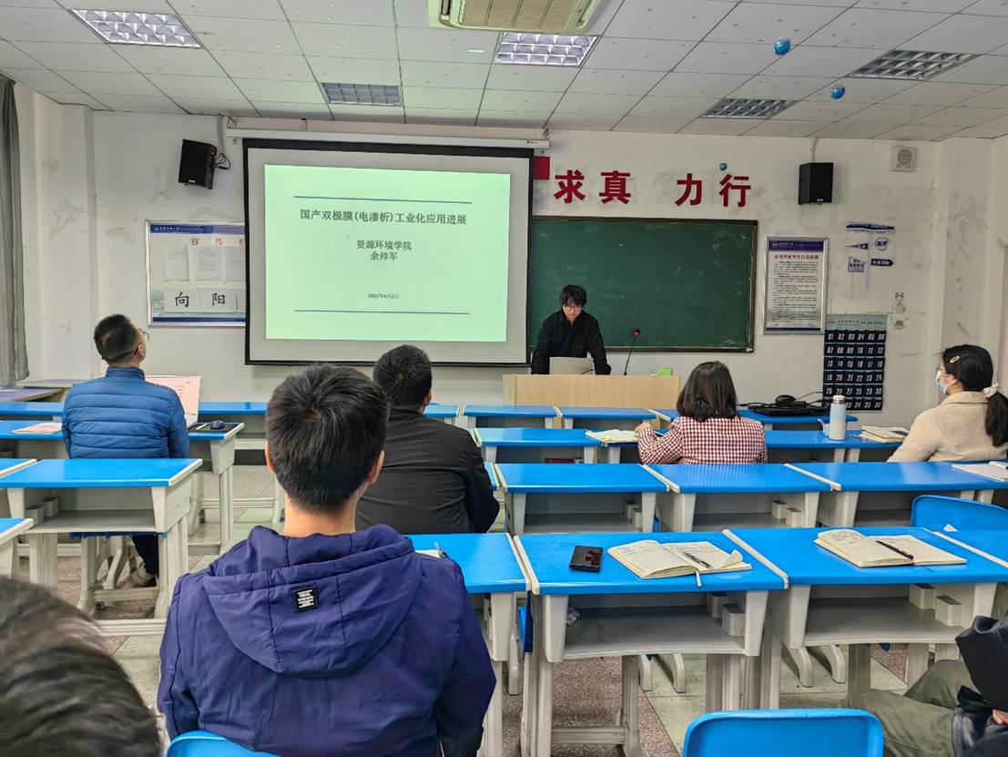 2025年4月2日星期三,yl23411永利官网环境工程教师党支部于4月2日成功举办"生态环保学术沙龙"特色党日活动。活动聚焦绿色技术前沿,邀请青年博士余帅军作题为《国产双极膜(电渗析)工业化应用进展》的专题报告,环境工程党支部教研室十余名骨干教师参与研讨,共同探索"双碳"目标下膜技术的创新突破路径。