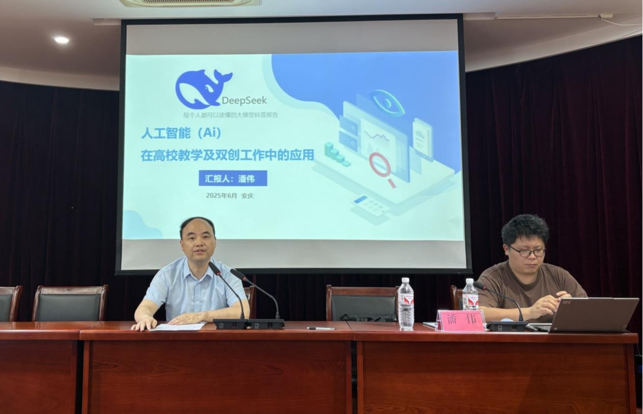 潘伟总经理以“人工智能(AI)在高校教学及双创工作中的应用”为题,解读AI在教学场景的应用、AI的局限性、AI工具的推荐以及AI使用优化等经验分享,并于现场老师就AI及双创展开讨论。