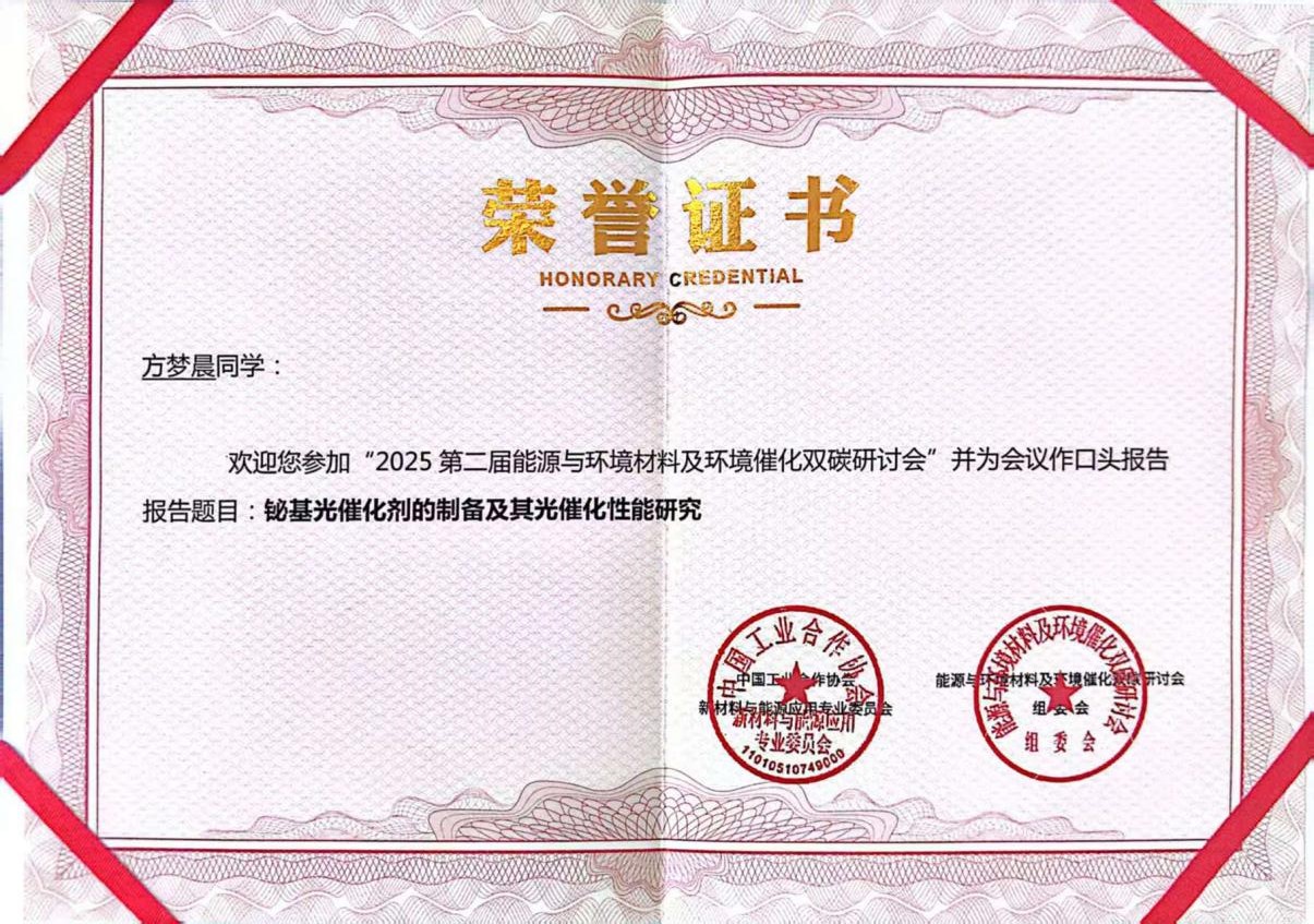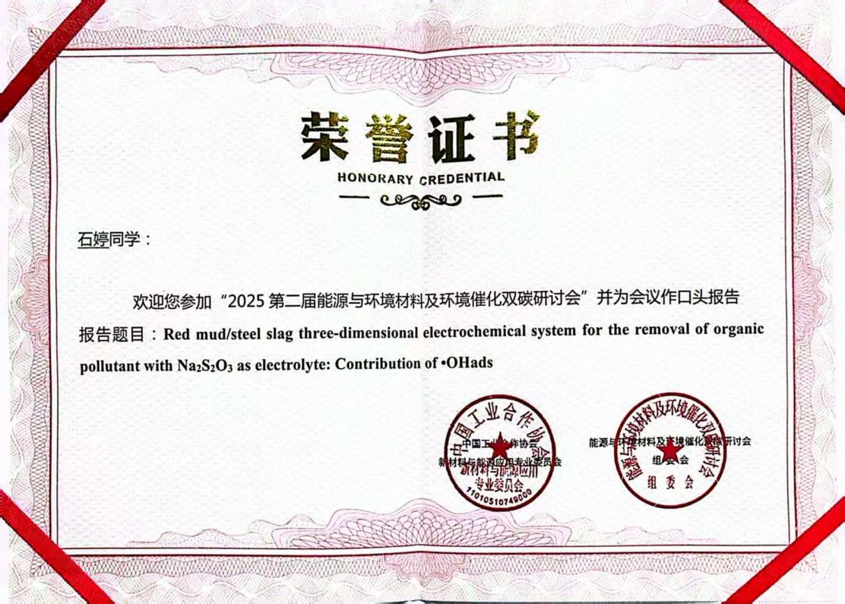 2025年8月11-13日,第七届全国有机光电功能材料与器件发展研讨会暨第二届能源与环境材料及环境催化双碳研讨会在河南洛阳成功召开。会议汇聚了国内相关领域的知名专家学者,围绕新型功能材料设计、能源转化与环境催化等前沿方向展开了深入交流。yl23411永利官网环保高端装备与污染控制研究团队应邀参会,团队研究生石婷、刘鑫、方梦晨分别作学术报告,集中展示了团队在环境功能材料与污染控制领域的最新成果,获得了与会专家的广泛关注与高度评价。