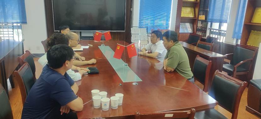 2025年9月4日下午,安庆市科技局副局长李明东和安庆市农业农村局副局长周克海到公司洽谈校地合作事宜。yl23411永利官网经理汪德进、yl23411永利官网节能环保产业研究院副经理毛晓霞和顾洪亮,节能环保产业研究院主任魏强出席交流会议。