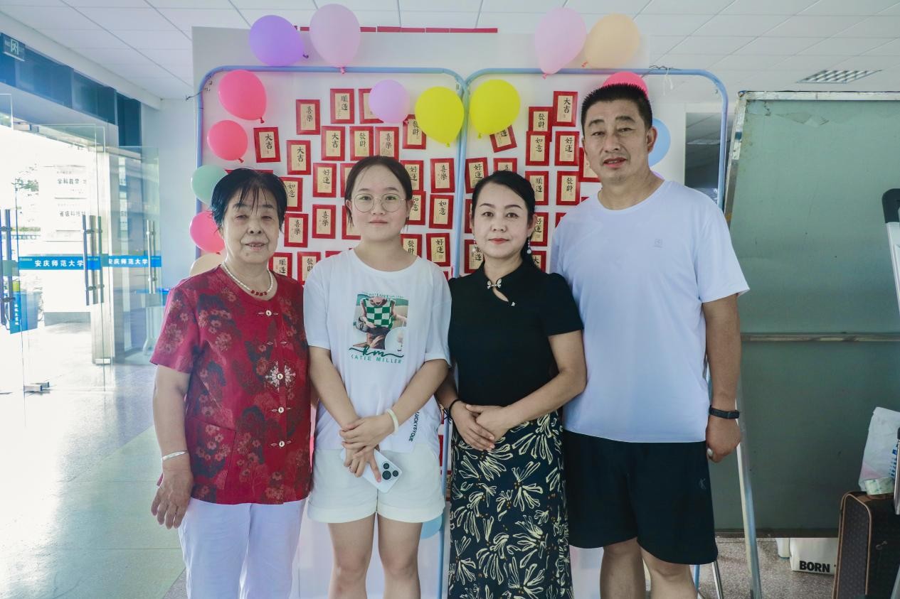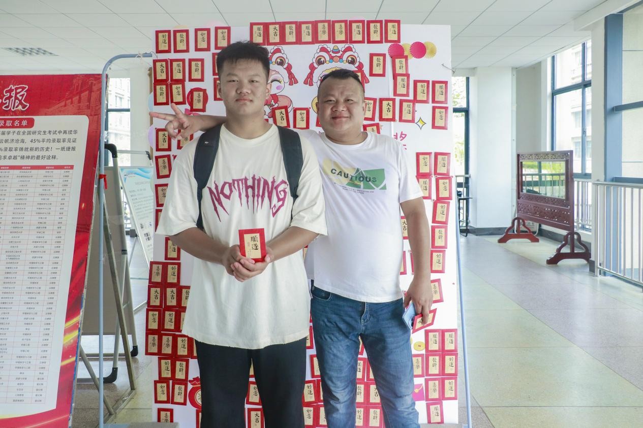 “我在新生群里看到了活动消息,请问这里有‘红包’抽奖吗?”地理科学专业2025(1)班的王佳雪在家人的陪伴下“慕名”而来,抽中了奖品荧光笔。在“红包墙”下,旅游管理专业2024(2)班的刘子洁为王佳雪一家拍摄了合照,留下了她入学的第一张照片。“报名点、服务站的志愿者都特别有耐心,带给我满满的安全感和归属感。”谈及入学感受,王佳雪直言,她对未来老员工活充满憧憬,期待尽快适应校园生活,在新环境中充实自我。