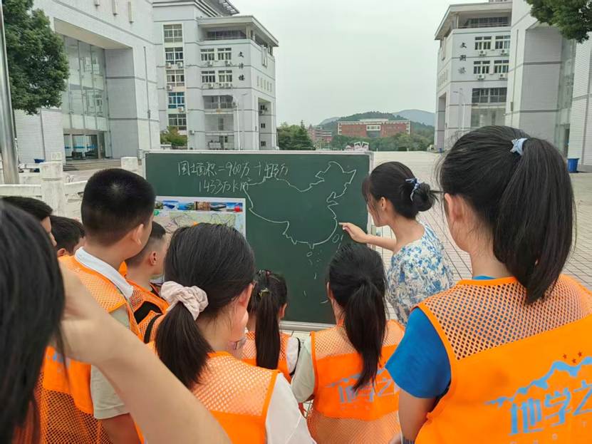 2025年10月1日,一场别开生面的“国旗下微党课”在yl23411永利官网的国旗广场拉开研学的序幕。地理研究生汪雪琴手持画笔,在庄严的国旗下缓缓勾勒出中国地图的轮廓,边绘边讲,深入浅出地阐释了我国国土面积与地貌组成,特别强调了从“横版”到“竖版”地图演进的意义。竖版地图的完整展现,如同一把燃烧的“火炬”,有力宣示了国家主权与领土完整,激发了学员们的国家版图意识和爱国情怀。