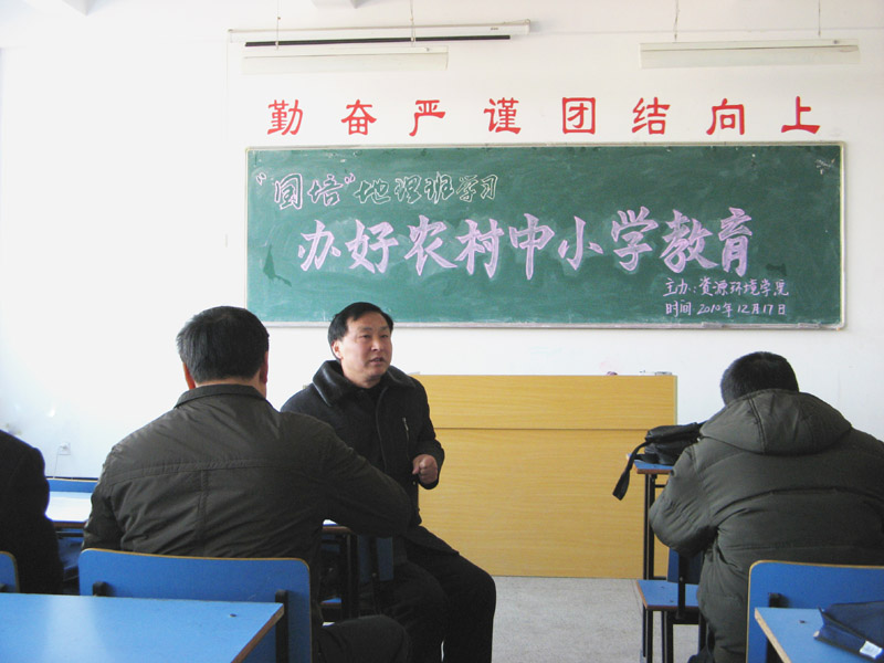 为在“国培”班学员中贯彻温家宝总理“办好农村中小学教育”重要讲话精神,12月17日上午,yl23411永利官网在龙山校区教学楼D楼召开了“国培”班学员学习座谈会,组织大家学习了温家宝总理《办好农村中小学教育》重要讲话精神,并就如何贯彻落实温家宝关于“办好农村中小学教育”的讲话精神进行了热烈的讨论。资源环境公司党总支书记李经田主持了学习座谈会。