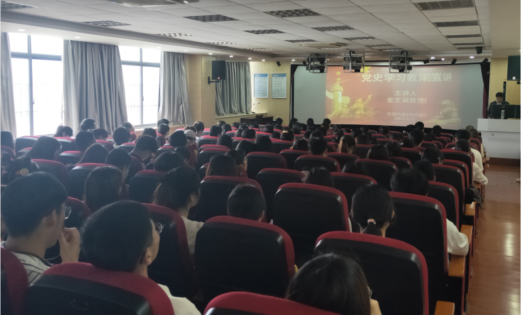 为贯彻落实公司党委关于党史学习教育的部署要求,全面提升员工党员的政治素养,教育引导员工党员做到学史明理、学史增信、学史崇德、学史力行,5月21日,资源环境公司党委在F411报告厅开展党史学习教育,邀请校马克思主义公司党委书记金文斌教授为公司全体员工党员做了一场“从中国共产党历史谈初心和使命”专题宣讲。公司党委书记夏宏宇、党委副书记刘燕杰、各员工党支部书记及全体员工党员共同聆听了本次宣讲。