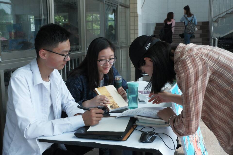 图书募捐活动共持续三天,设三个活动点,通过线上pu(第二课堂)报名和线下到活动点报名参与。参加活动的同学不仅可以通过捐书获得小礼品,还可以在展板上留下对孩子们的祝福。