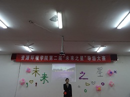经过前期比赛,共有10名选手晋级决赛,精彩的舞蹈拉开了比赛的序幕。每位选手先进行各具特色的自我介绍,现场的气氛激烈而又紧张,在演讲过程中,选手通过生动的语言,其中还有英语试演讲,展现了选手们极高的水平加上PPT的播放,让演讲更加丰富多彩,悦耳的伴奏,优美的语言,带领观众游览壮丽山河。作为一名导游,口才只是其中之一,接下来的精彩才艺表演更让我们认识到一名优秀的导游所需具备的品质。经过激烈的角逐,2012级旅游管理4班的陈伟同学获得本次比赛的一等奖,周丹、程甜甜、王璐娜等同学也分别在比赛中脱颖而出。