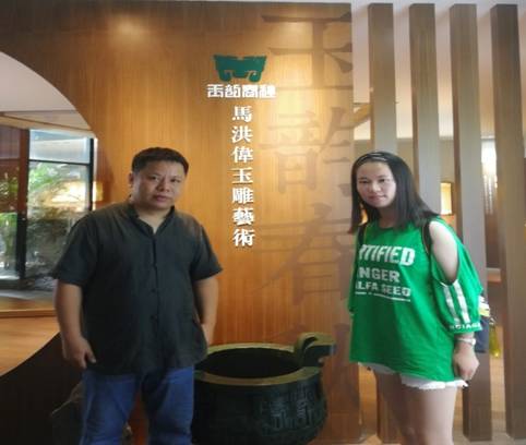 调研团成员首先来到吴中区光福镇国家级非物质文化遗产玉雕代表性传承人马洪伟老师的玉韵春秋工作室。马洪伟老师从事玉雕工作26年,现为中国玉石雕刻大师,他的作品获奖数不胜数,曾经被颐和园展览并且永久收藏,其中作品《角》被大英博物馆永久收藏。马洪伟老师提及他做玉雕分为四个阶段:第一个阶段就是“挣钱”;第二个阶段是为了“提升”,有舍必有得。他给自己的定位终究是个匠人而非商人;第三阶段,树立个人风格,花了八年时间寻求突破——成为玉雕青铜器系列雕刻艺术的第一人。而今他仍坚守在光福这片土地上,追梦无止境;第四阶段则是做传递“玉文化的使者”。关于玉雕手工艺传承问题,马洪伟老师说他已经成立了自己的团队,团队中各个年龄层次都有,但同时他也提出手工艺在传承中有版权力度保护不足的问题,他希望国家能加大对文化创作的保护力度,以此激发手工艺传承人的信心和热情。