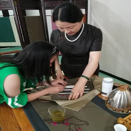 调研团队成员随后又来到苏绣代表性传承人府向红老师工作室进行考察学习。府老师表示,作为苏绣手工艺人,觉得自己有义务将手艺传承下去,所以她竭尽全力想尽办法宣传苏绣,利用网络平台招收人才,为学习者们提供舒适的工作环境。“为了让更多人正确认识苏绣,我也开始尝试大众产品,比如书签刺绣、笔记本刺绣啊,我将苏绣融入人们日常用品中价格也比较大众,希望可以得到效果。”