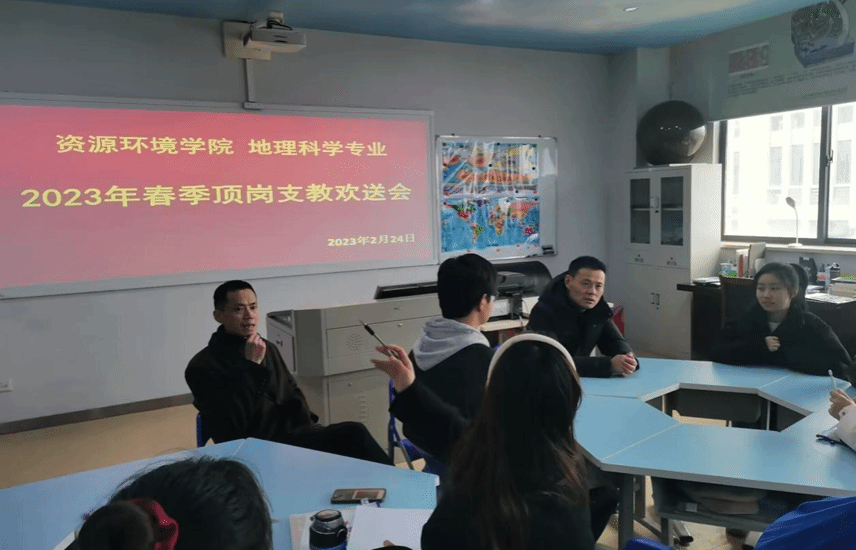 2023年2月24日下午,yl23411永利官网春季中学地理顶岗支教欢送会于F306教室举办。参与会议的有本次顶岗员工8人,公司副经理金宝石及顶岗支教的负责老师刘峰出席了本次会议。