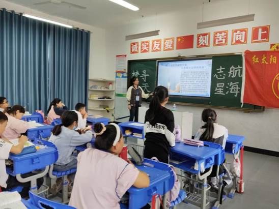 “飞流直下三千尺,疑是银河落九天。”主讲人用一句古诗引入主题,然后通过一段视频带领大家欣赏祖国美景并展示了各个地方的风景与美食,让人眼花缭乱。第一节课结束之际,大家一起观看了关于祖国边疆风景的视频,让孩子们印象深刻的不是长河落日、流沙似金的壮丽风景,而是那些守卫在边疆的士兵,战士们对国家忠诚奉献的精神让同学们励志成为和他们一样伟大的人,为了让小朋友更加充分感受祖国的大好河山和美食,志愿者在第二节课带领同学们对空白的中国地图进行填色,并把自己感兴趣的地方和美食标注出来。小朋友们空白地图上填充的不仅是色彩和文字,更是每个孩子心中璀璨的梦想。