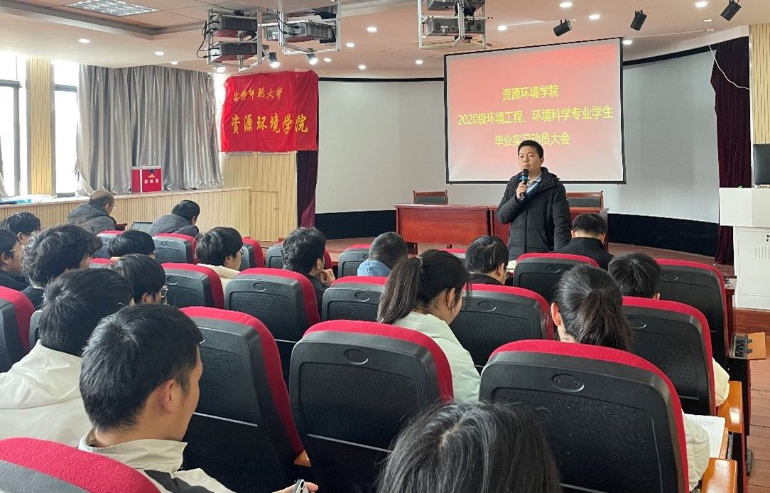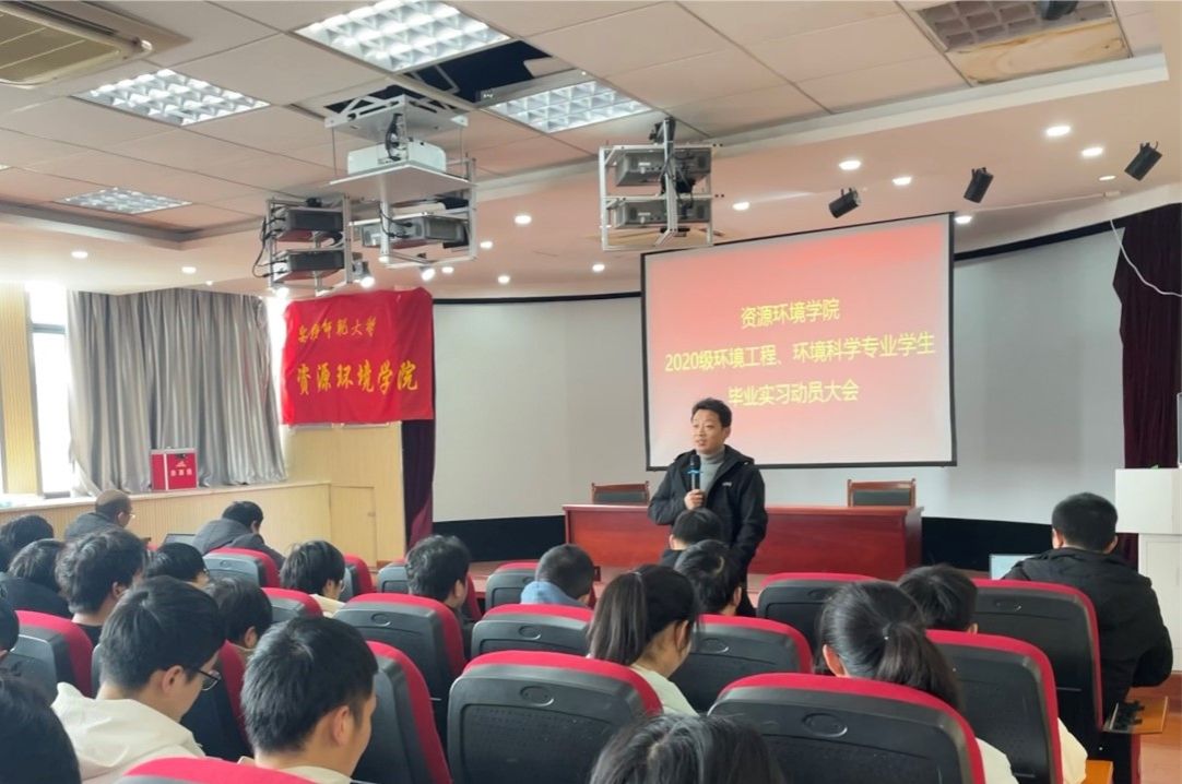 为促进2020级毕业实习的顺利开展,3月8日中午,yl23411永利官网在F411报告厅召开了2020级环境工程、环境科学专业毕业实习动员大会。出席本次动员大会的有资源环境公司党委副书记黄建平,环境工程、环境科学教研室主任,实习指导老师,辅导员以及2020级全体员工。本次会议由环境科学教研室主任李明主持。