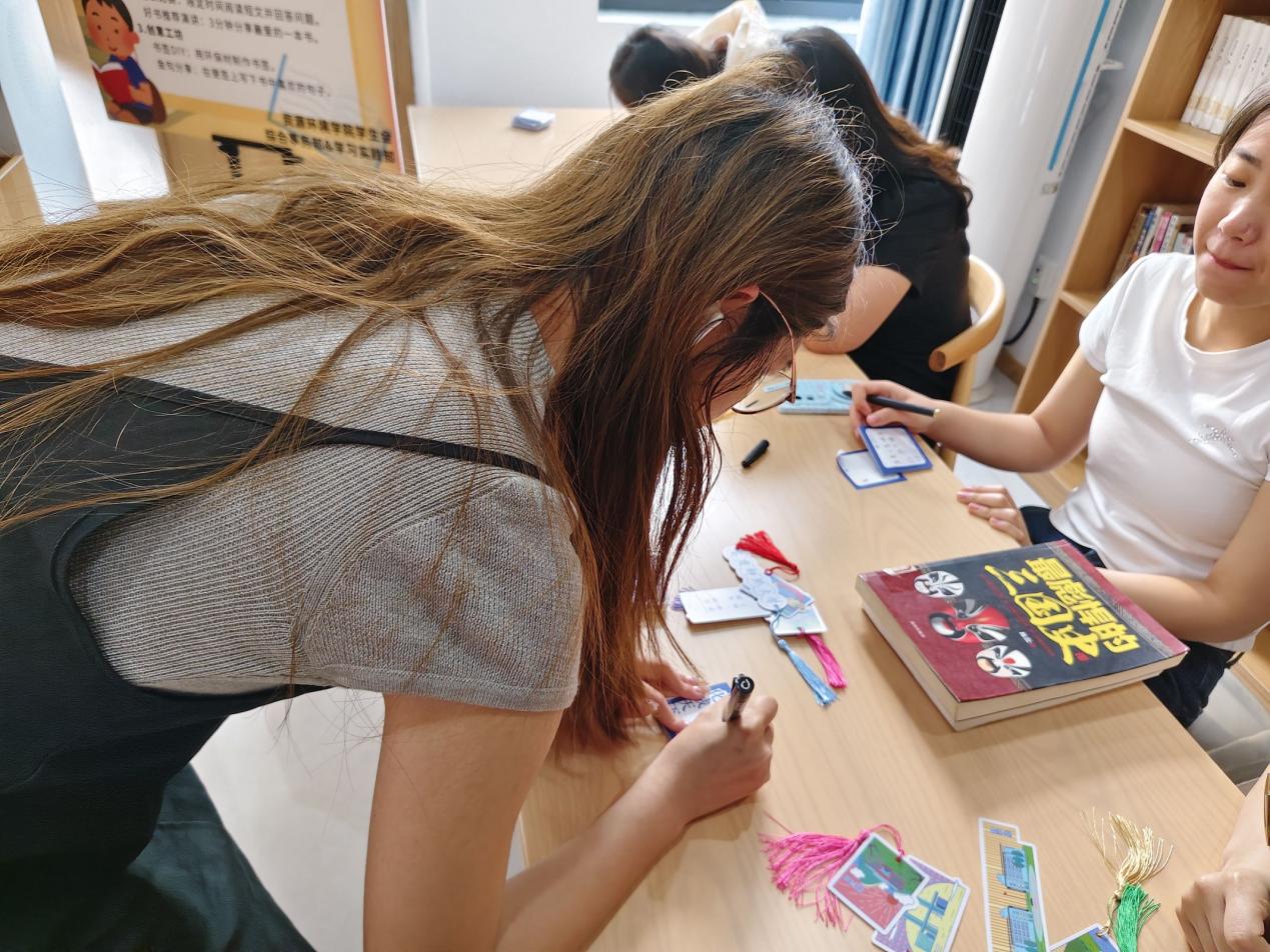 巧手剪裁出各种有趣形状,巧妙拼贴彩纸、干花与麻绳,书写下对阅读的感悟……一片片独具匠心的书签在员工们手中诞生,大家互相展示成品,分享创意。环境工程专业2023级(2)班王欣感慨:“自己亲手做的书签很纪念意义,以后每次翻书看到它,都会想起今天创作的乐趣。”