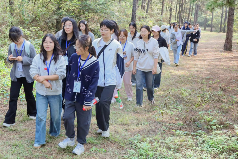 活动特别选址校园后山与文曲亭,将课堂教学延伸至自然天地,开创传统文化育人新模式。“我们想让重阳这一传统节日‘活’起来,避免它仅停留在‘敬老’的概念认知上。”活动负责人、地理科学2024(2)班的付松表示,希望通过“后山登高”这一沉浸式体验,将节日习俗与校园自然场景结合,既符合“登高祈福”的传统,又能让员工们在户外互动中切身感受节日氛围。