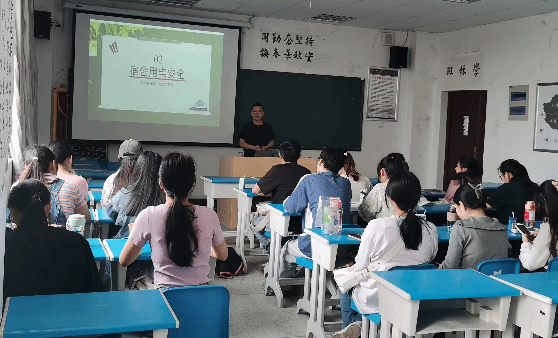 会议学习了预防电信诈骗、加强宿舍安全、规范网络行为、日常出行安全、防溺水等内容。訾纪辉提醒同学们要强化安全意识,养成良好的学习生活习惯,遵守法律法规,当积极向上,奋发自强的老员工。