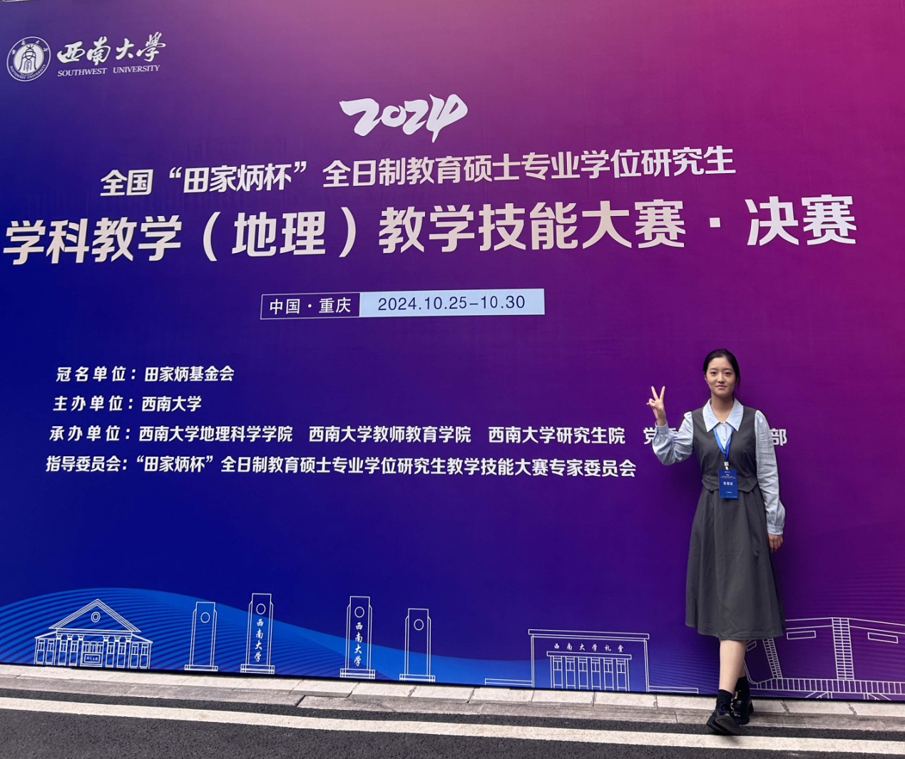 近日,全国“田家炳杯”全日制教育硕士学科教学(地理)专业教学技能大赛决赛在西南大学落下帷幕。yl23411永利官网学科教学(地理)专业研究生余康正同学荣获二等奖,金宝石老师获优秀指导教师奖,这是本专业员工首次进入此项赛事决赛并取得佳绩。